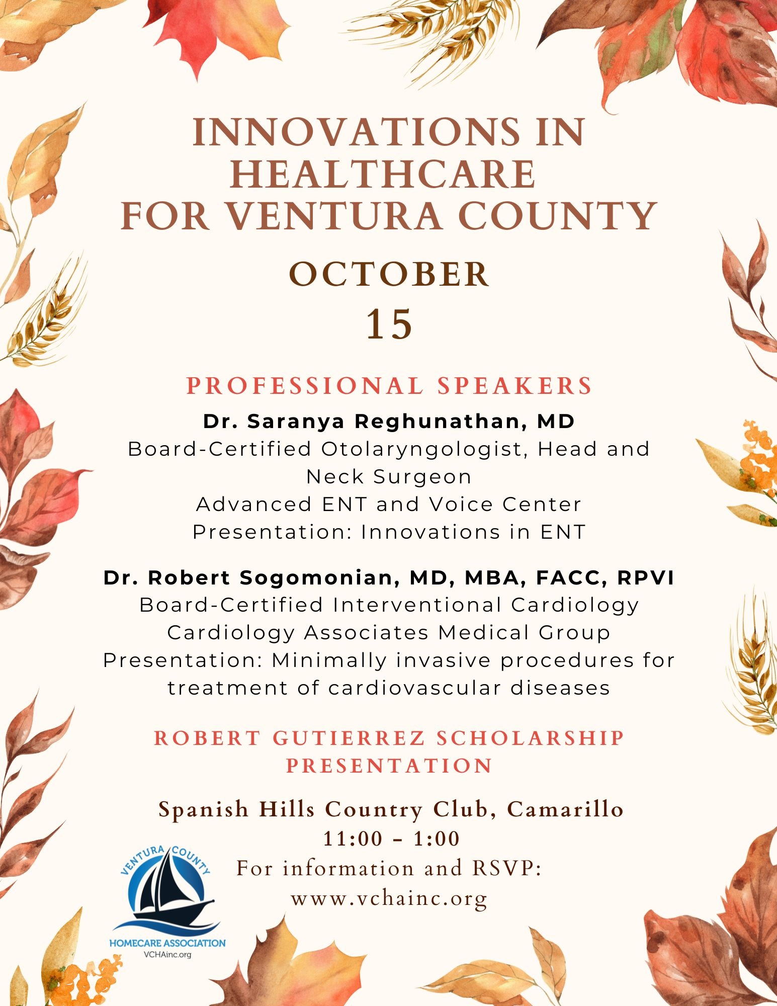 VCHA Luncheon – Wednesday, Oct. 15, 11:00a.m. to 1:00p.m. Please arrive by 11:00 for networking opportunities since the meeting will start promptly at 11:30. Members: Bring a prize for the raffle! LOCATION: Spanish Hills Country Club, 999 Crestview Ave., Camarillo, CA 93010